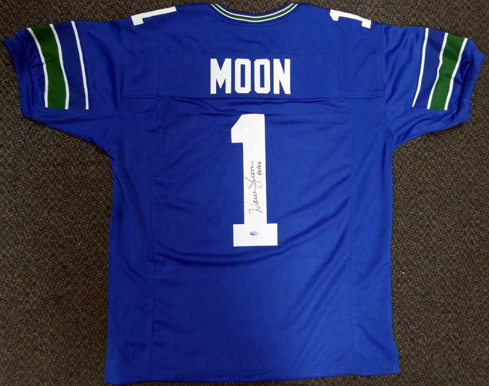 Seattle Seahawks Warren Moon Autographed Blue Jersey "HOF 06" MCS Holo