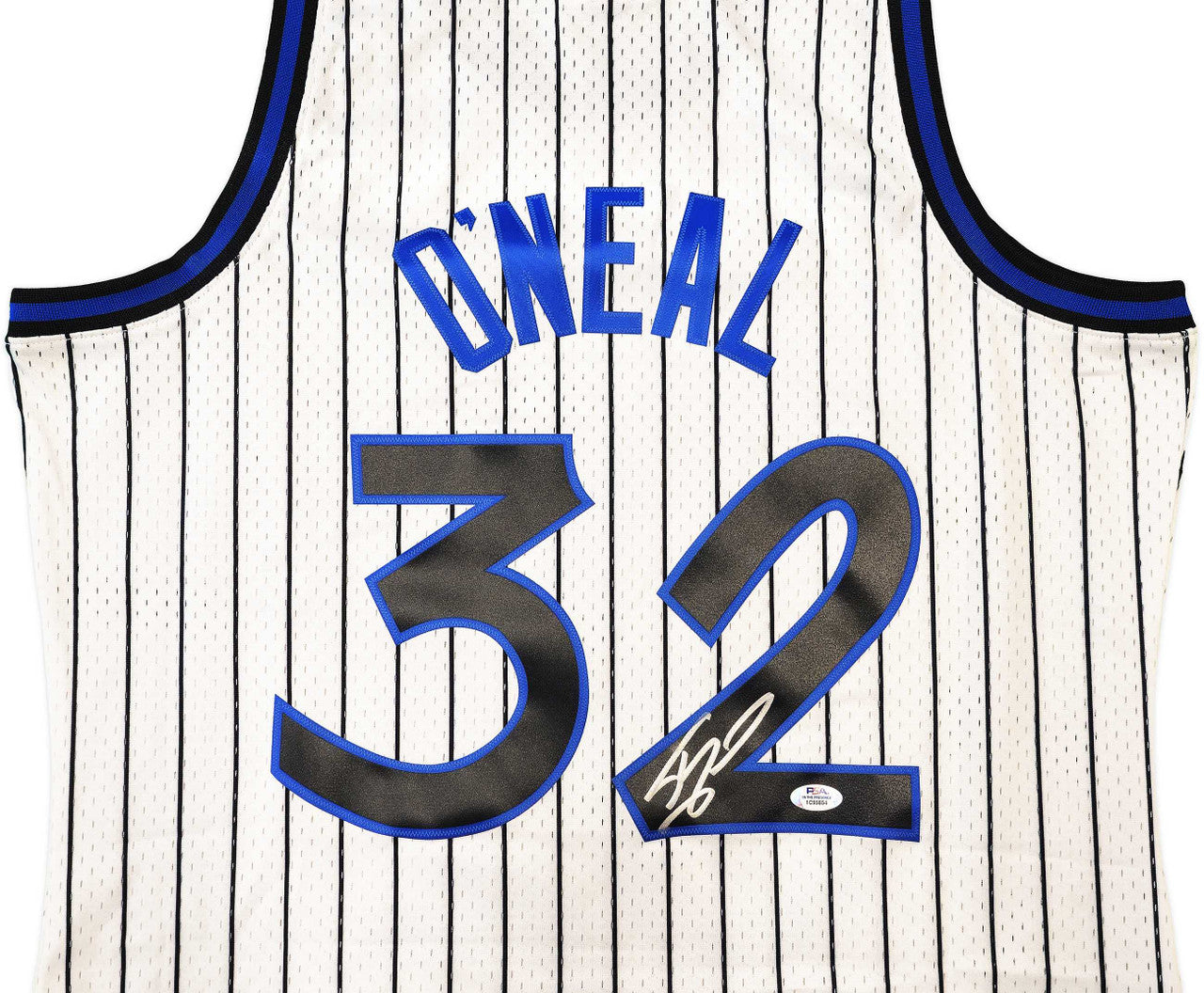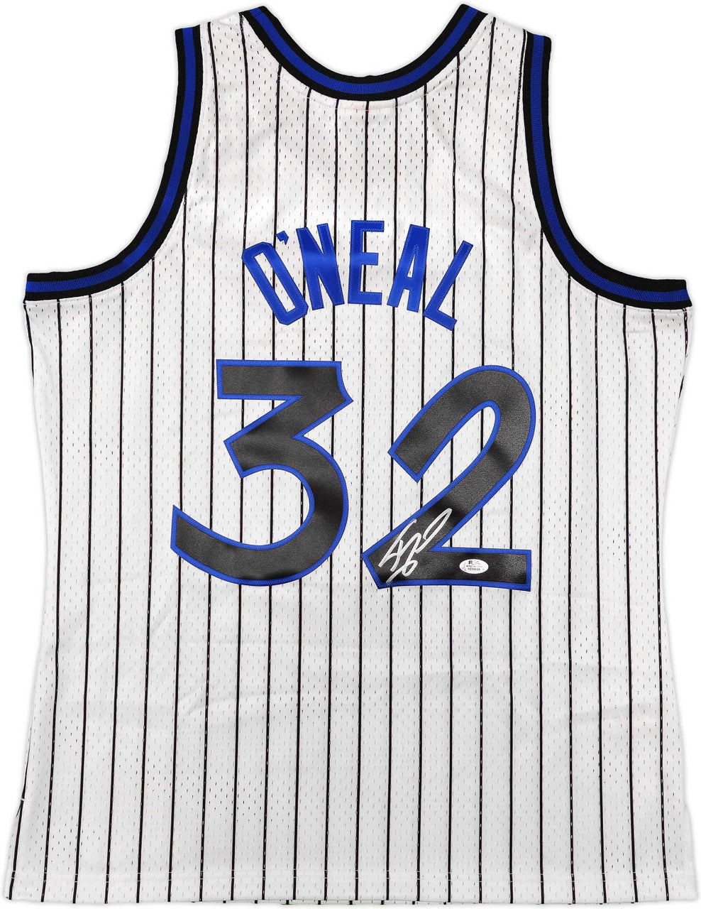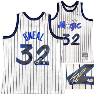 This premium Mitchell & Ness Hardwood Classics Swingman Jersey features the iconic white Orlando Magic pinstripe design with fully stitched name and numbers. The jersey has been hand-signed by Shaquille O’Neal and authenticated by PSA/DNA, one of the most respected names in sports memorabilia authentication. Each autograph includes a tamper-proof PSA/DNA hologram and a matching COA for lifetime verification.