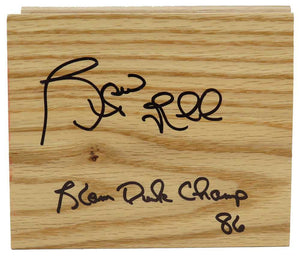 Spud Webb signed 5x6 floor piece with 'Slam Dunk Champ 86' inscription. Item comes with a Schwartz Sports Memorabilia tamper-proof numbered hologram and Certificate of Authenticity which can be verified online.