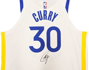Celebrate greatness on the hardwood with this Stephen Curry Autographed White Nike Association Edition Jersey. Featuring the official home jersey of the Golden State Warriors, this collectible is hand-signed by the NBA's all-time 3-point leader, Stephen Curry. A stunning piece for any dedicated basketball fan or sports memorabilia investor.