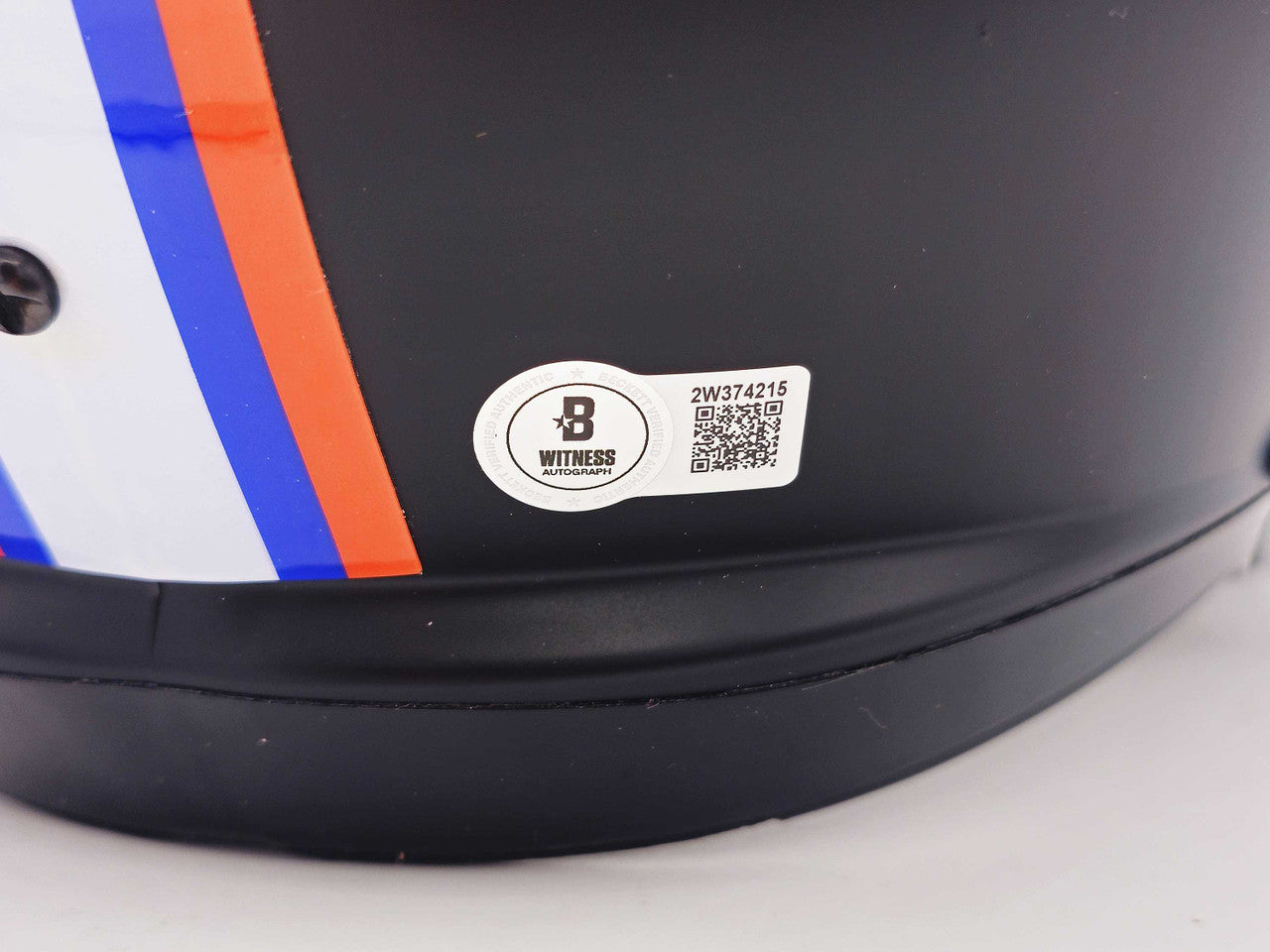 Own a premium full-size football helmet with this Steve Spurrier Autographed Florida Gators Black 2023 Alternate Full Size Speed Replica Helmet Beckett BAS Witness Stock #236151. Authenticated by Beckett BAS Witness for confidence and long-term value.