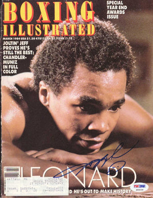 This is a Magazine Cover that has been hand signed by Sugar Ray Leonard. Please Note: This is the Cover of the Magazine as shown. This is NOT the entire magazine. It has been certified authentic by PSA/DNA and comes with their sticker and matching certificate of authenticity.