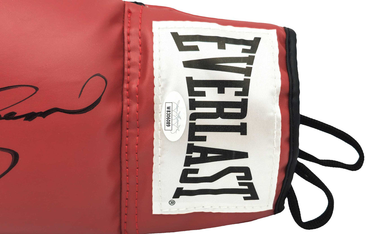 This official Everlast red boxing glove—signed on the left-hand (LH) glove—offers a bold, iconic display that perfectly complements Leonard’s clean autograph. The vibrant red color and premium Everlast craftsmanship make this glove an exceptional centerpiece for shadow box framing, display cases, or elite boxing memorabilia collections.