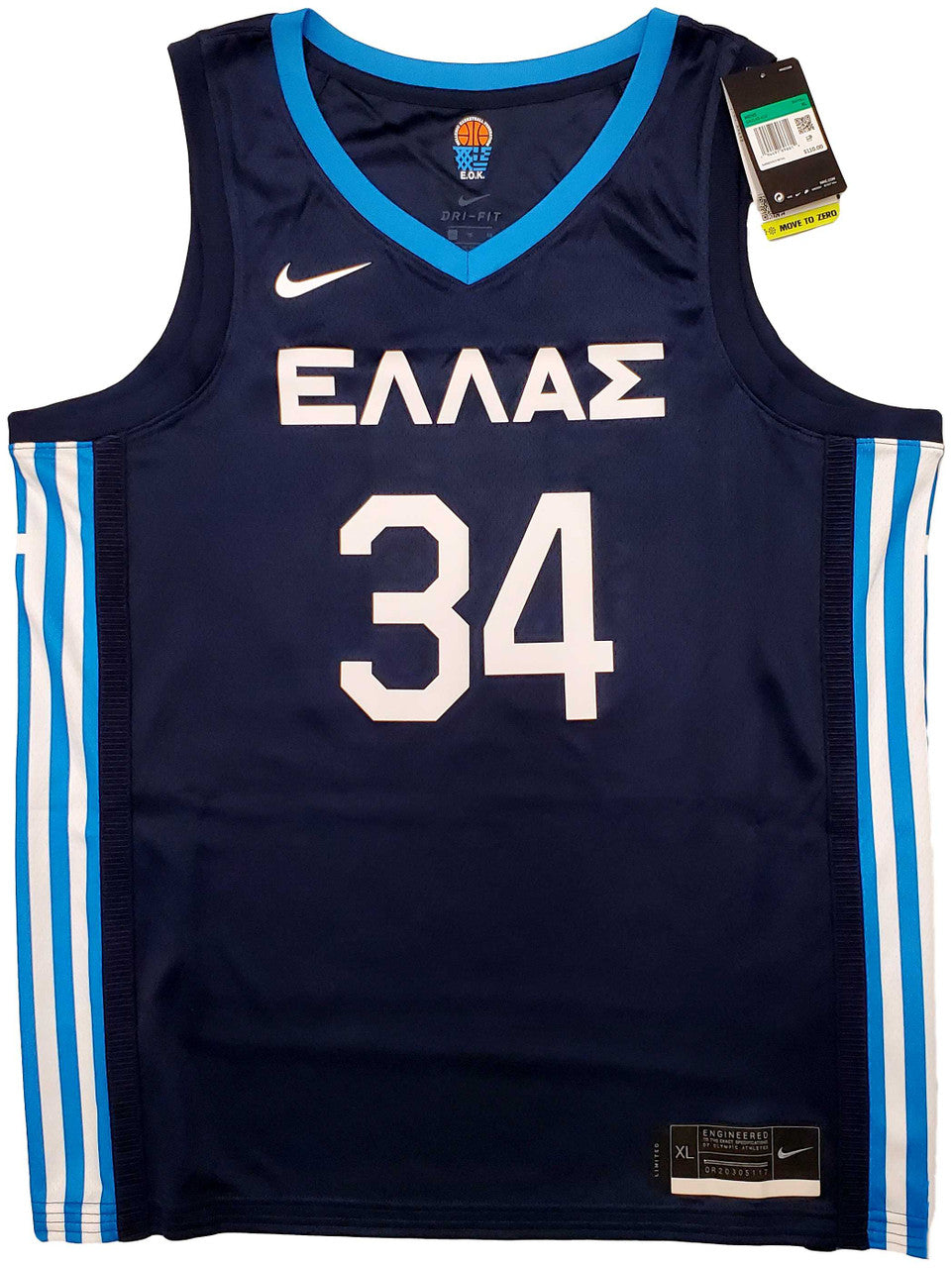 Team Greece Giannis Antetokounmpo Autographed Blue Nike Jersey Size XL – Beckett BAS QR
