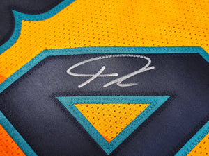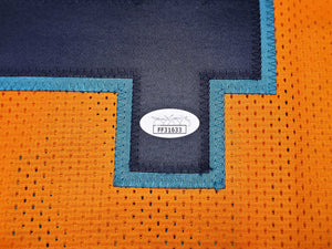 A custom jersey is not associated with any official apparel supplier. It features stitched letters and numbers but no official logos. Custom jerseys are typically Size XL and are intended for display only. The autograph is 100% genuine and professionally certified.