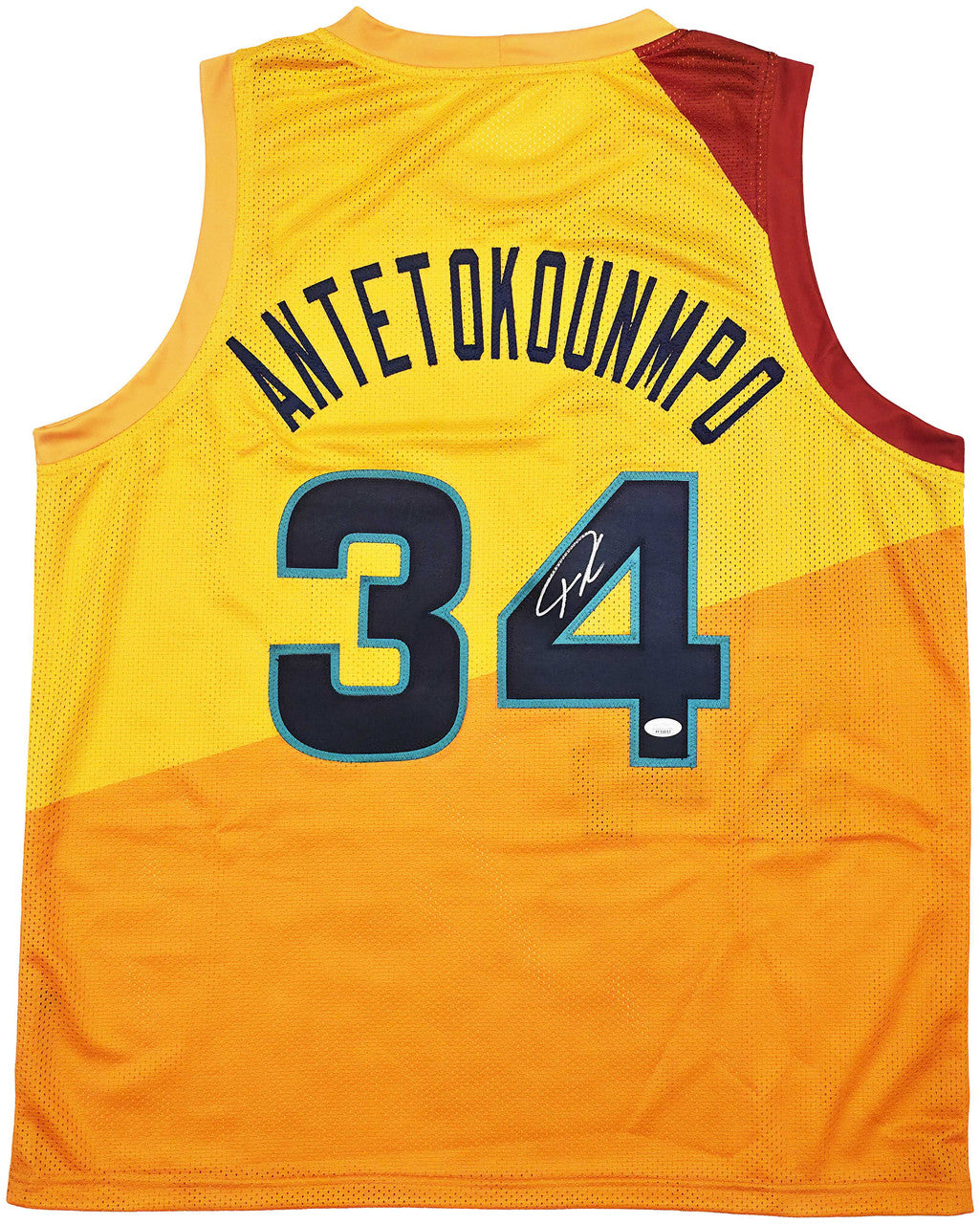 This premium Custom Yellow Team Greece Jersey has been hand-signed by Giannis Antetokounmpo with a bold, clean autograph. The signature is fully authenticated by JSA (James Spence Authentication), one of the most respected authorities in sports memorabilia. A tamper-proof JSA certification sticker accompanies the item for lifetime authenticity verification.