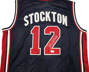 Team USA John Stockton Autographed Blue Jersey Beckett BAS Witness