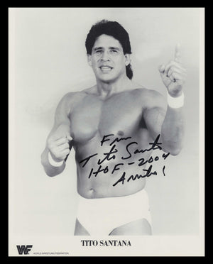 This is an 8x10 Photo that has been hand signed by Tito Santana. This item is guaranteed to pass any third party authentication company including Beckett, PSA/DNA, & JSA authentication.