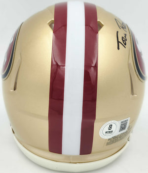 Tom Rathman Autographed San Francisco 49ers Gold Speed Mini Helmet – Beckett BAS Witness