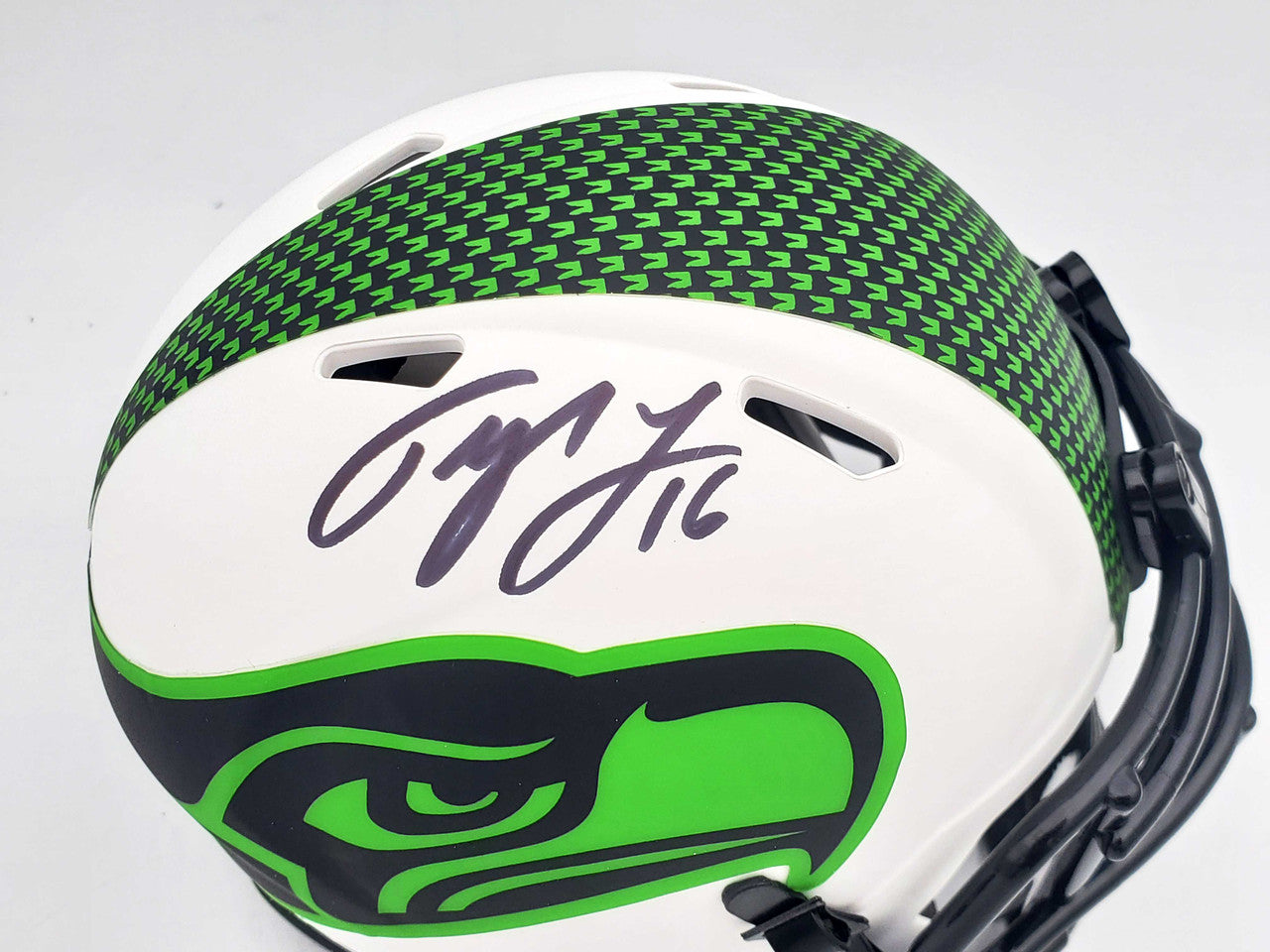 Tyler Lockett Autographed Seattle Seahawks Lunar Eclipse White Speed Mini Helmet MCS Holo