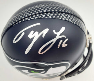 Tyler Lockett Autographed Seattle Seahawks Mini Helmet In Silver MCS Holo Stock #182258