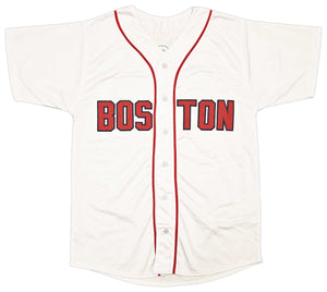 The autograph is boldly displayed on a clean, high-quality custom white jersey, designed specifically for autograph collecting and display. This timeless presentation makes it an outstanding centerpiece for a Red Sox fan cave, office, or vintage MLB memorabilia collection.