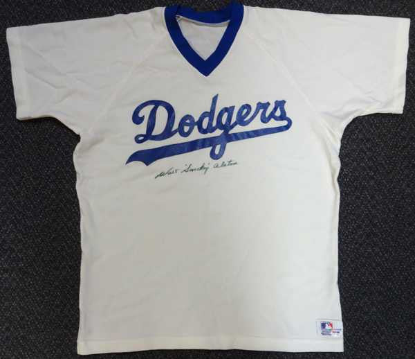 This is a Sand Knit Dodgers Jersey that has been hand signed by Walt Walter "Smokey" Alston. It has been certified authentic by PSA/DNA and comes with their sticker and matching full page certificate of authenticity. The jersey is a size XL.