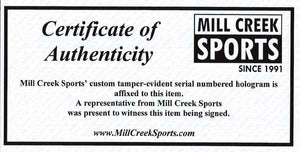 This item has been certified authentic by Mill Creek Sports (MCS) and includes their tamper-proof numbered hologram and matching Certificate of Authenticity (COA). The autograph was signed in the presence of a Mill Creek Sports representative and can be verified online for lifetime assurance of authenticity.