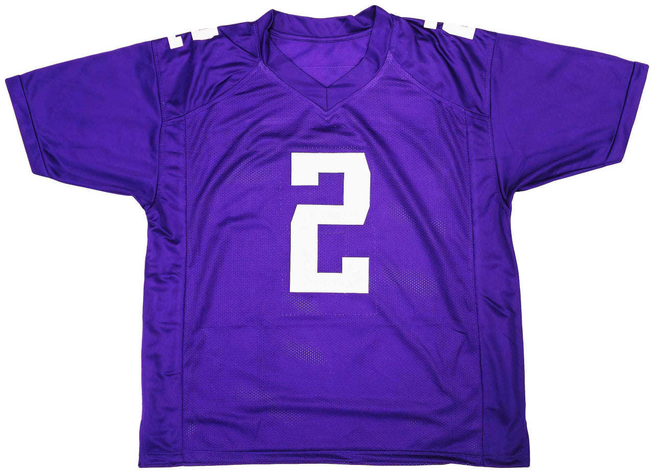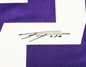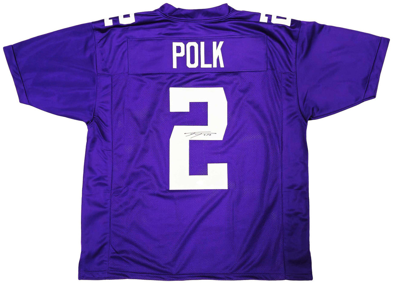 This is a Purple Jersey that has been hand signed by Ja'Lynn Polk. This is a custom jersey with no name brand. The approximate size is XL. It has nice sewn in name and numbers. This item was signed in the presence of a Mill Creek Sports representative and comes with their serial numbered hologram and matching certificate of authenticity.