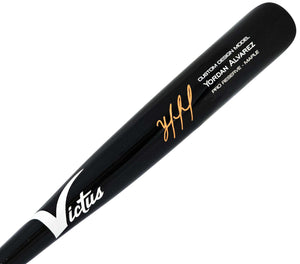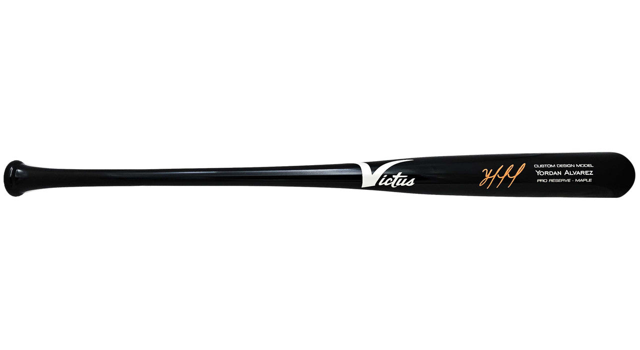 This is a Black Victus Player Model Bat that has been hand signed by Yordan Alvarez. This item has been witnessed and certified authentic by Beckett Authentication (BAS) and comes with their tamper-proof witness sticker.