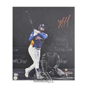 Yordan Alvarez Autographed Houston 16x20 Baseball Photo - BAS (Vertical, Dark Background)