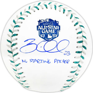 This is an Official 2023 All Star Game Logo MLB Game Baseball that has been hand signed by Zac Gallen. This item was inscribed "NL Starting Pitcher." This item has been witnessed and certified authentic by Beckett Authentication (BAS) and comes with their tamper-proof witness sticker.