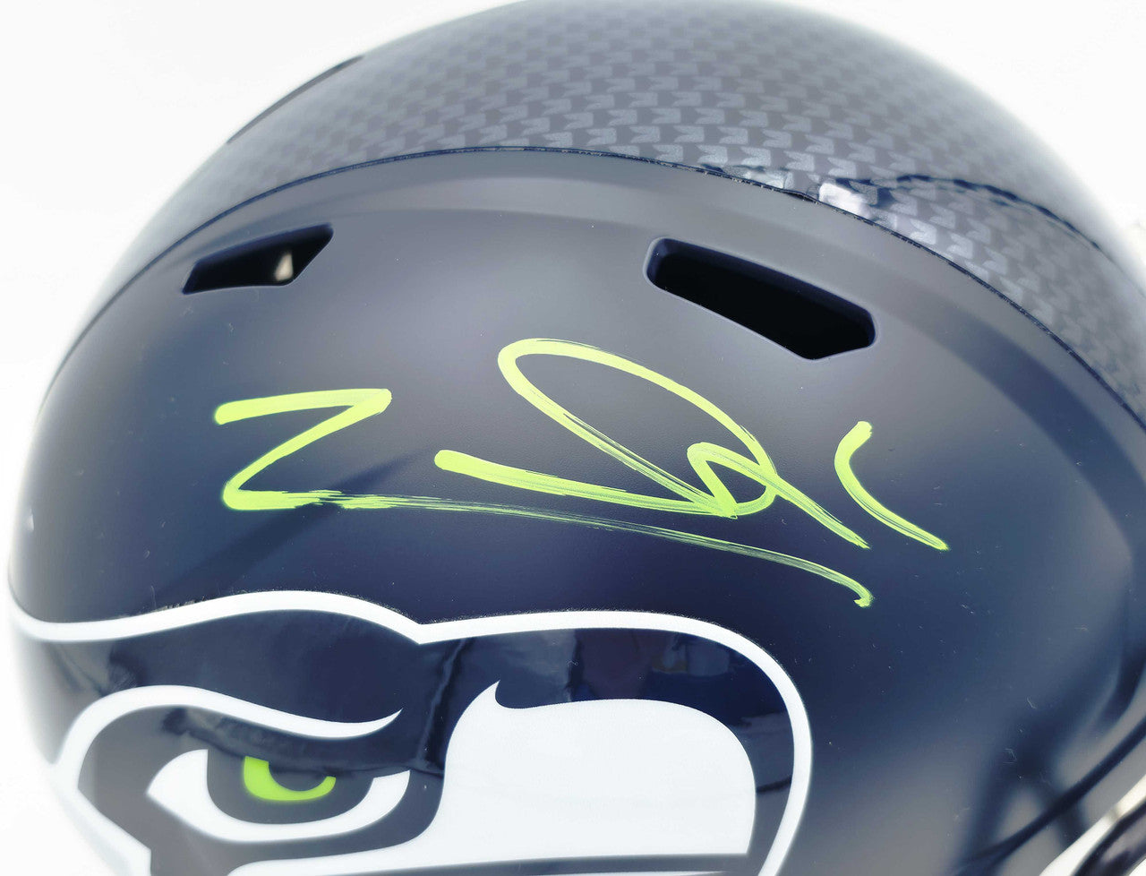 Zach Charbonnet Autographed Seattle Seahawks Blue Full Size Speed Replica Helmet MCS Holo, professionally authenticated for long-term collector confidence.